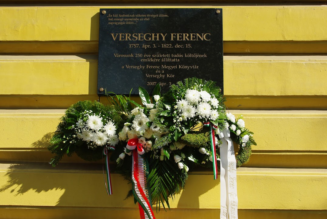 | A Verseghy Kör és a Jász-Nagykun-Szolnok Megyei Verseghy Könyvtár emléktáblát állított névadója születésének 250. évfordulójára 2007 áprilisában a könyvtár épületének bejáratánál |